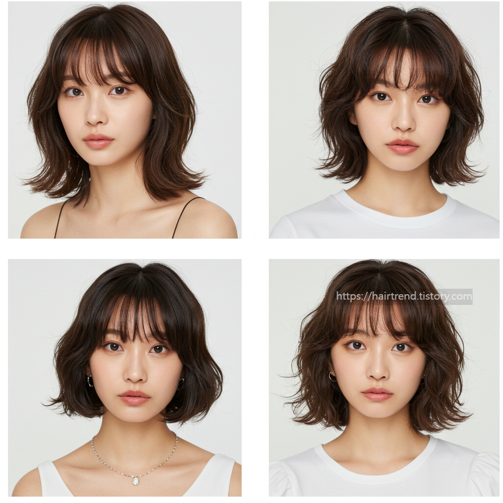 - 스타일링 팁: 턱 라인 주변으로 안쪽 말림이나 웨이브를 주어 볼륨감 연출